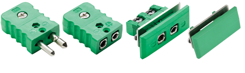 These round pin standard connectors are ideal for connecting thermocouple sensors and extension or compensating cable to each other. The pins are polarised to avoid an incorrect connection and the connector body is additionally marked for polarity. They are rated for use between -50°C and +220°C. In addition to offering a plug and socket, panel sockets and panel blanking sockets are also available. Panel blanking sockets are useful for when using a panel with less connectors than cut-outs, to avoid having an empty slot. Matching anodised aluminium connector panels can also be found in this section. Weatherproof silicone rubber boots are also available for added protection in moist environments as well as cable clamps.